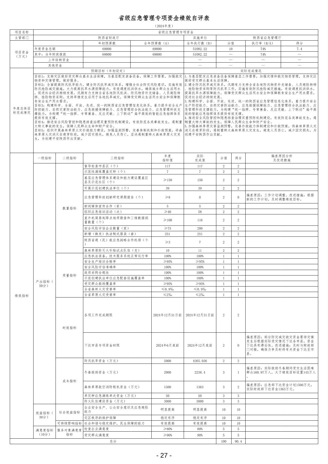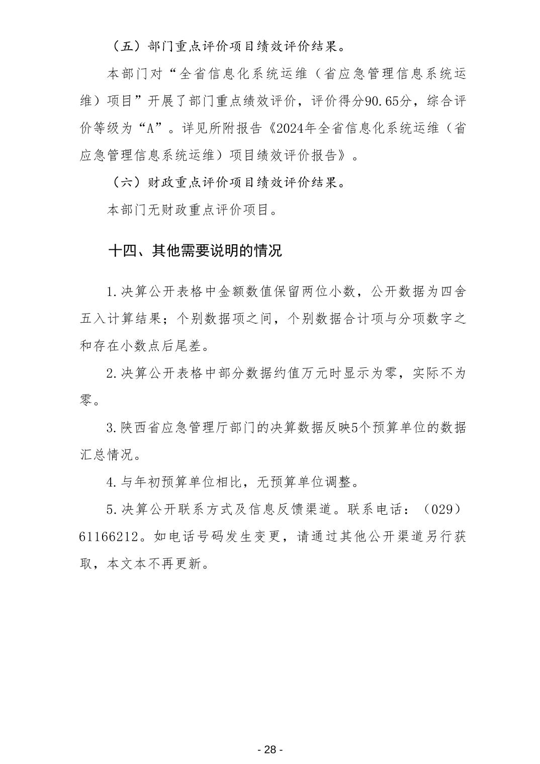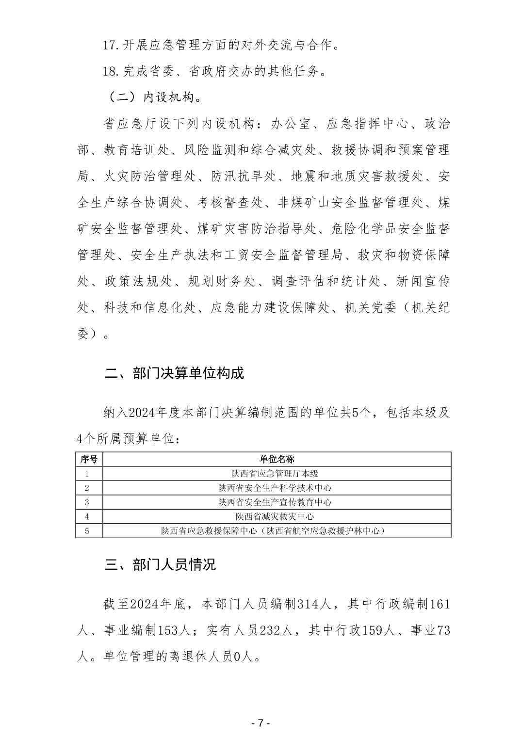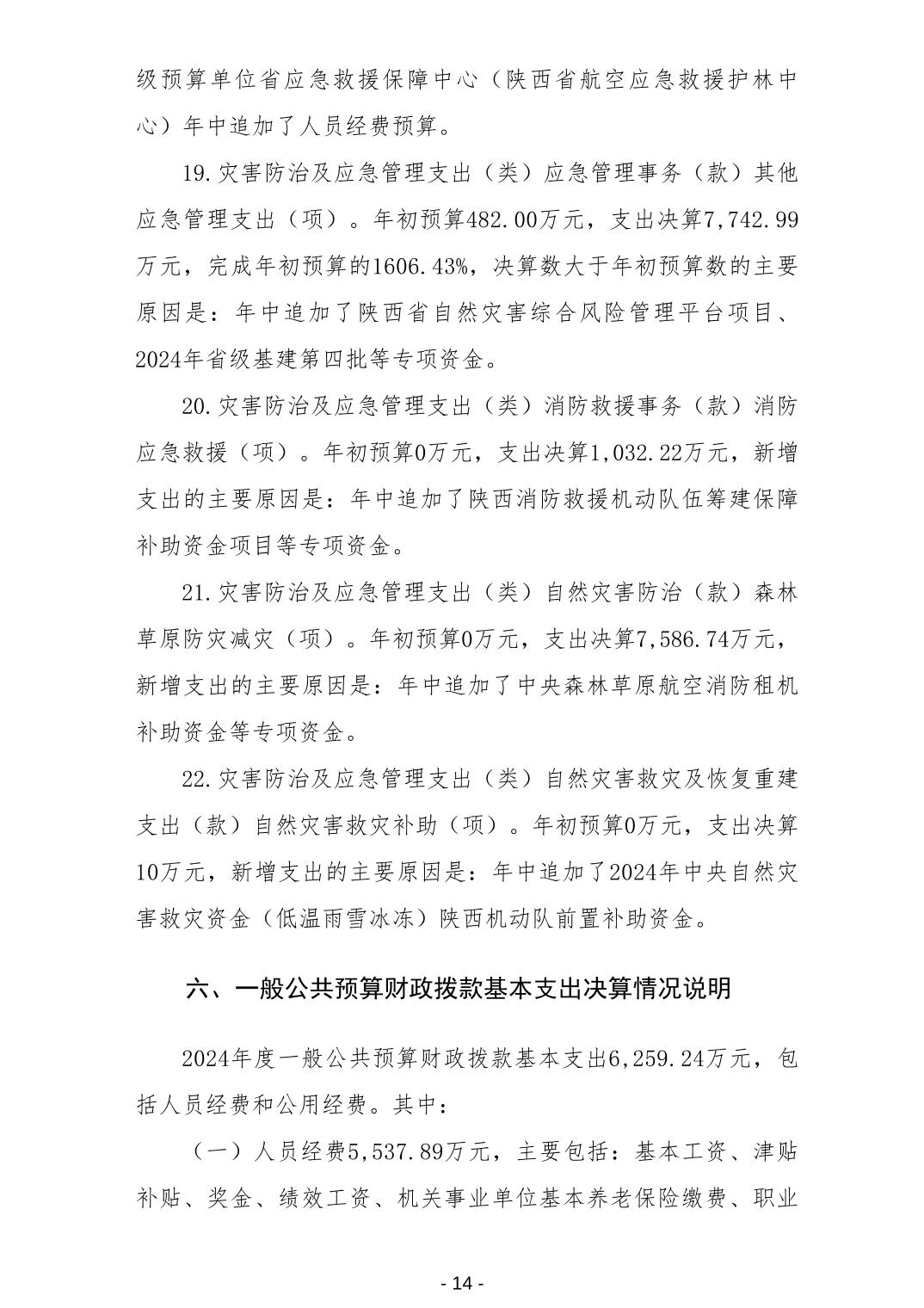 陕西省应急管理厅2024年度部门决算