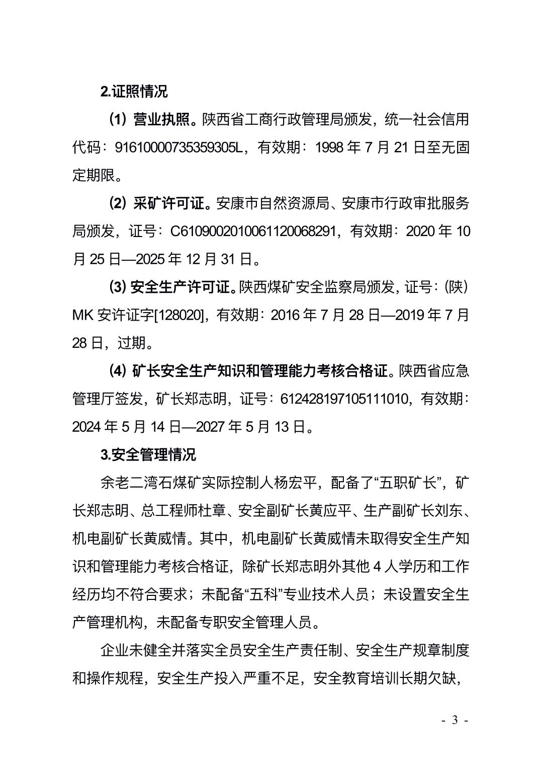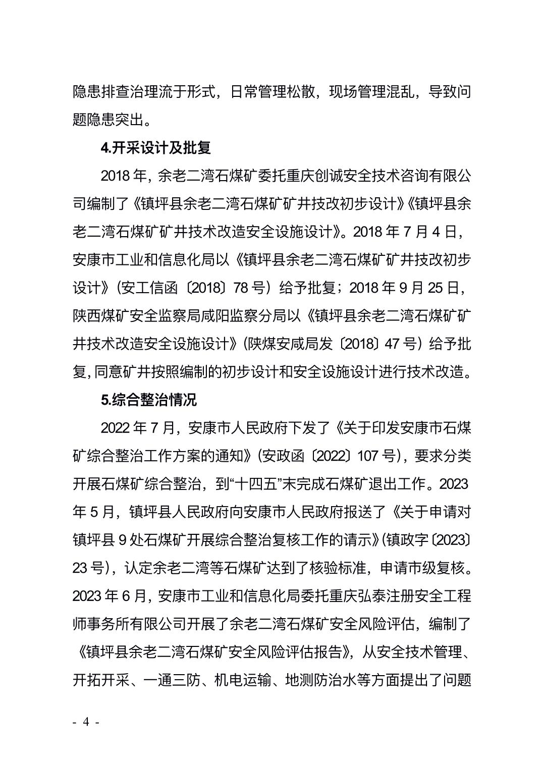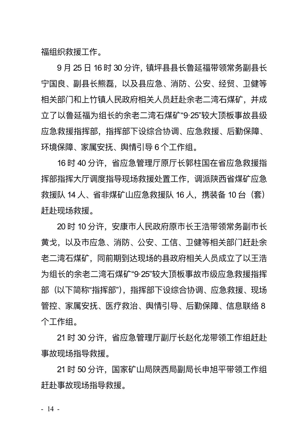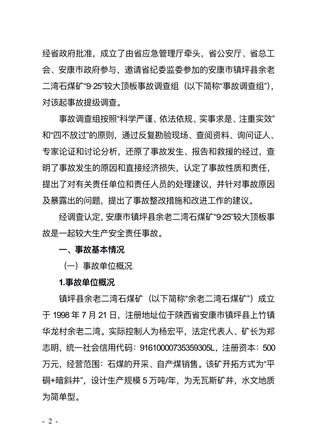 安康市镇坪县余老二湾石煤矿“9·25”较大顶板事故调查报告
