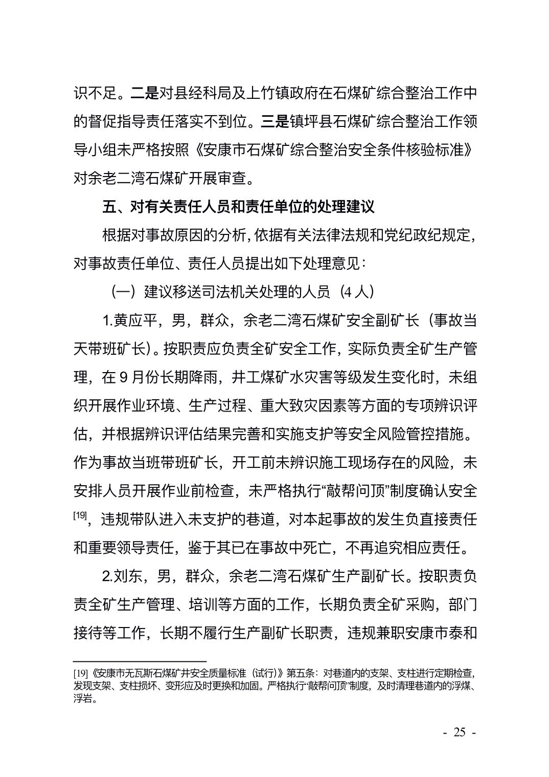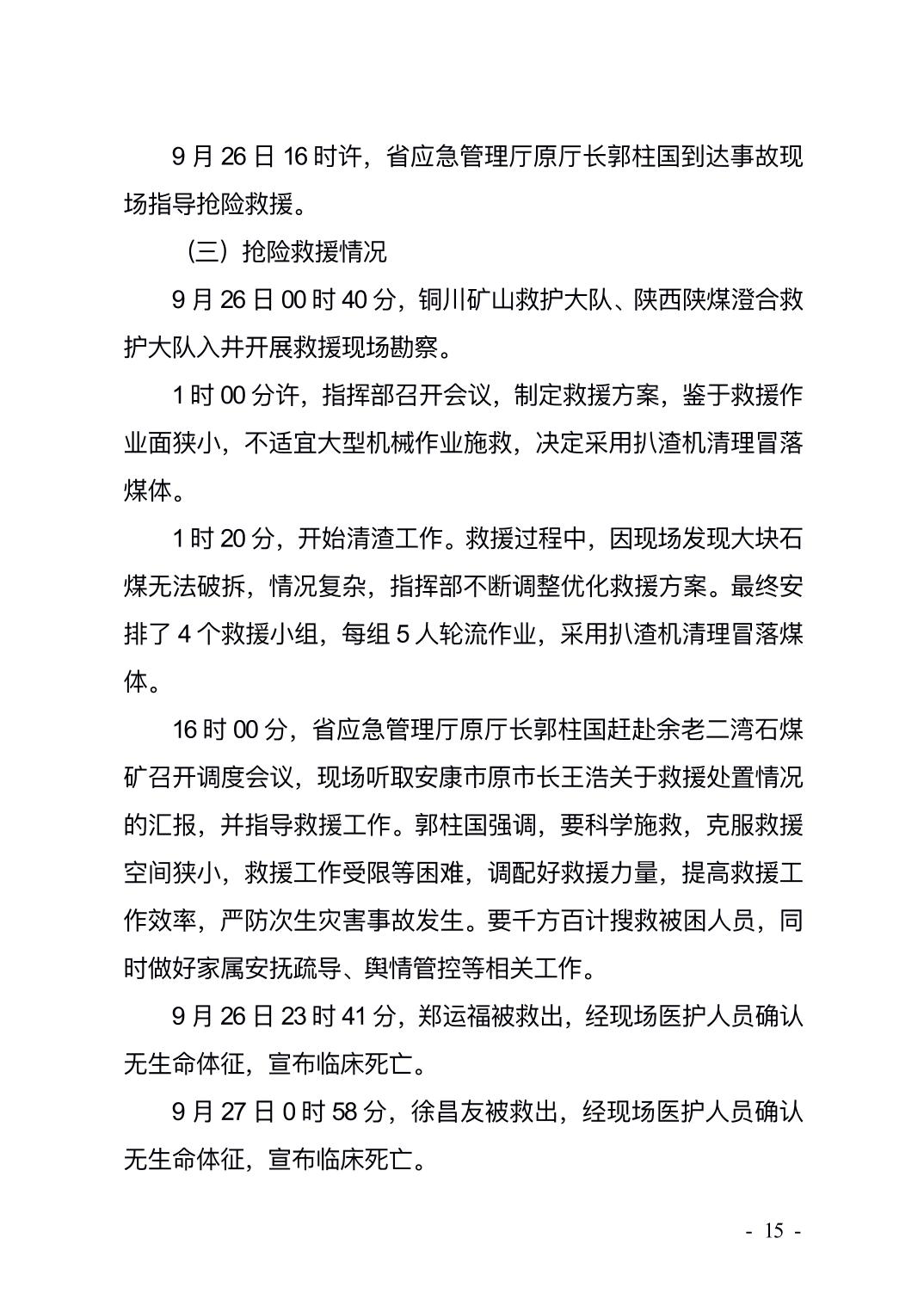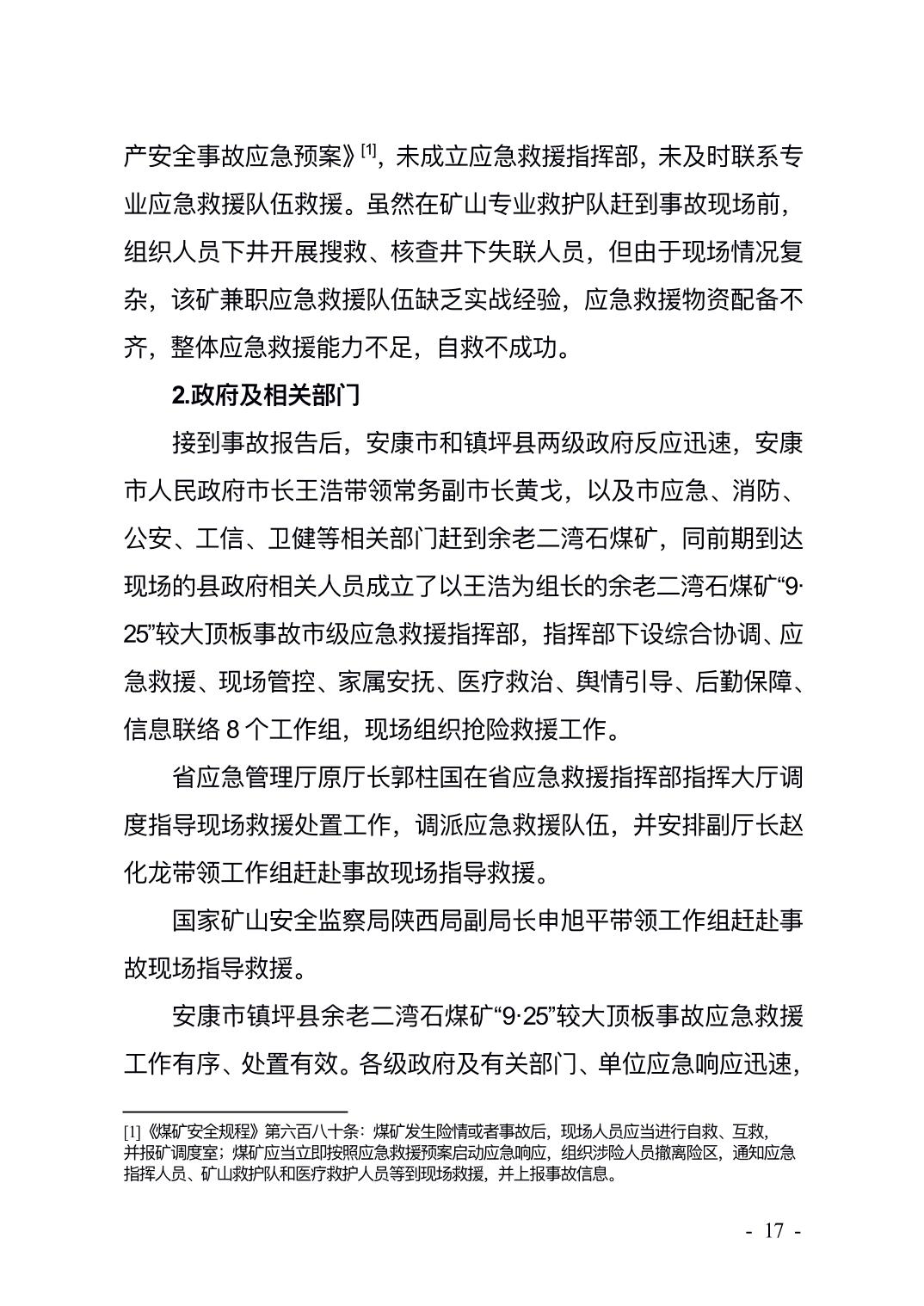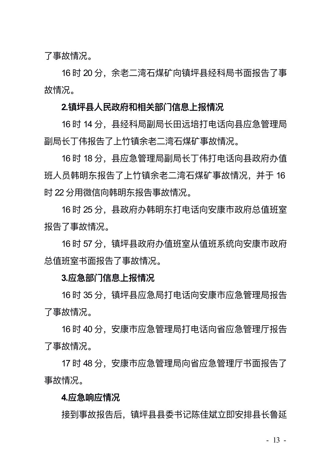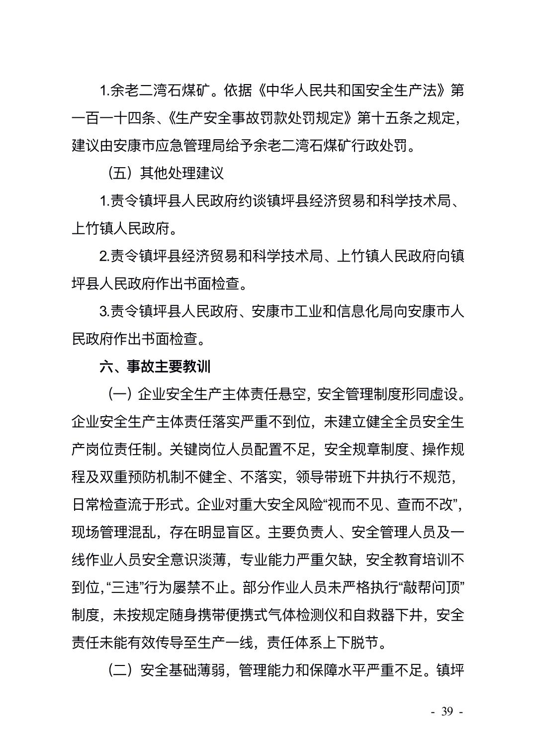安康市镇坪县余老二湾石煤矿“9·25”较大顶板事故调查报告