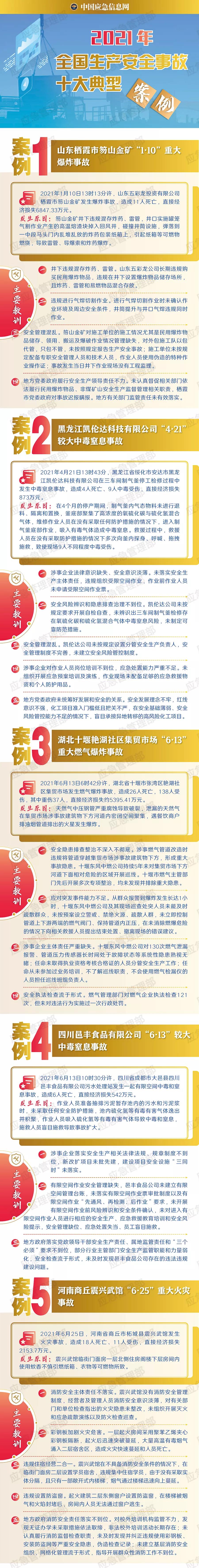 应急管理部公布2021年全国生产安全事故十大典型案例