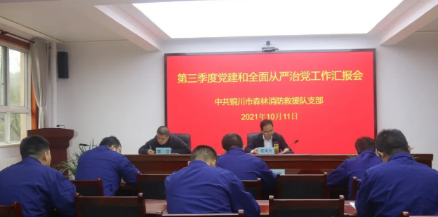 会上,铜川市森林消防救援队支部书记代表支部从政治建设、思想建设、组织建设、纪律作风建设和全面从严治党五个方面将支部前三季度党建和全面从严治党工作进行详细汇报,既汇报取得的成绩,同时查摆存在问题和下一步工作计划。