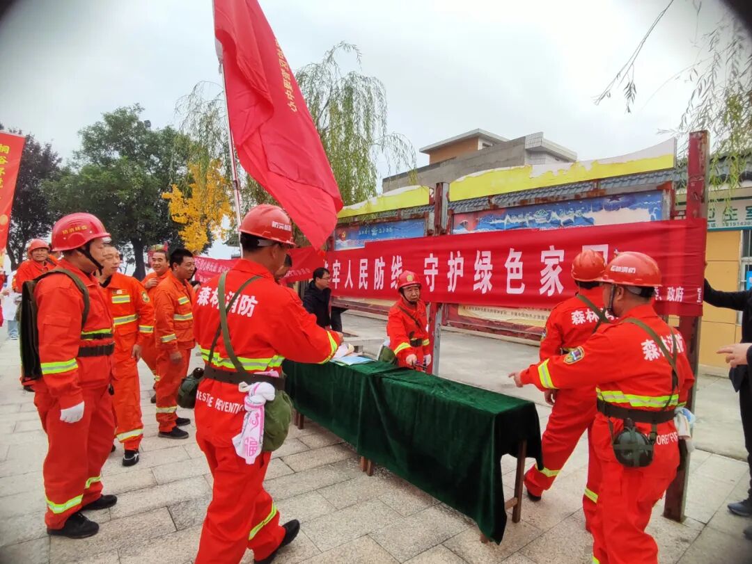 在桐峪镇人武部长赵明明的领誓下,半专业扑火队员和县镇村干部代表 100余人庄严宣誓:“严守防火责任,牢记职责使命;苦练专业技能……”铿锵有力的誓言回荡现场,彰显了筑牢森林防火线的坚定决心。