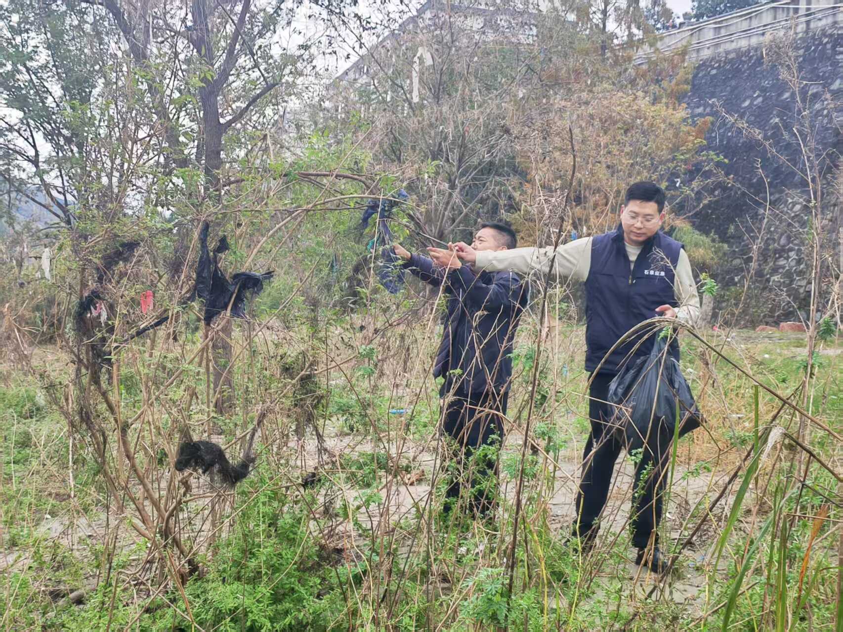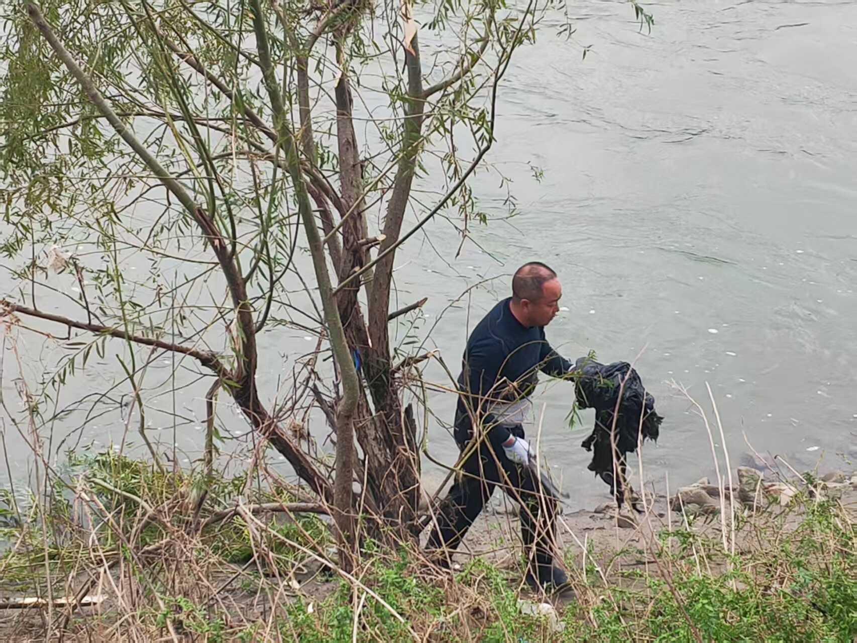 清理现场,大家化身为“河道美容师”,手持洋镐、火钳等工具,对辖区内洪峰过后留下的塑料袋子、瓶子等固体垃圾和废弃物进行细致清理,并对沿线江水中的漂浮物进行打捞。利用砍刀、油锯、梯子,彻底清除树上缠绕的固体垃圾。经过三天的集中攻坚,辖区内河道岸边的洪水冲击物、积存垃圾及各类杂物被彻底清理。