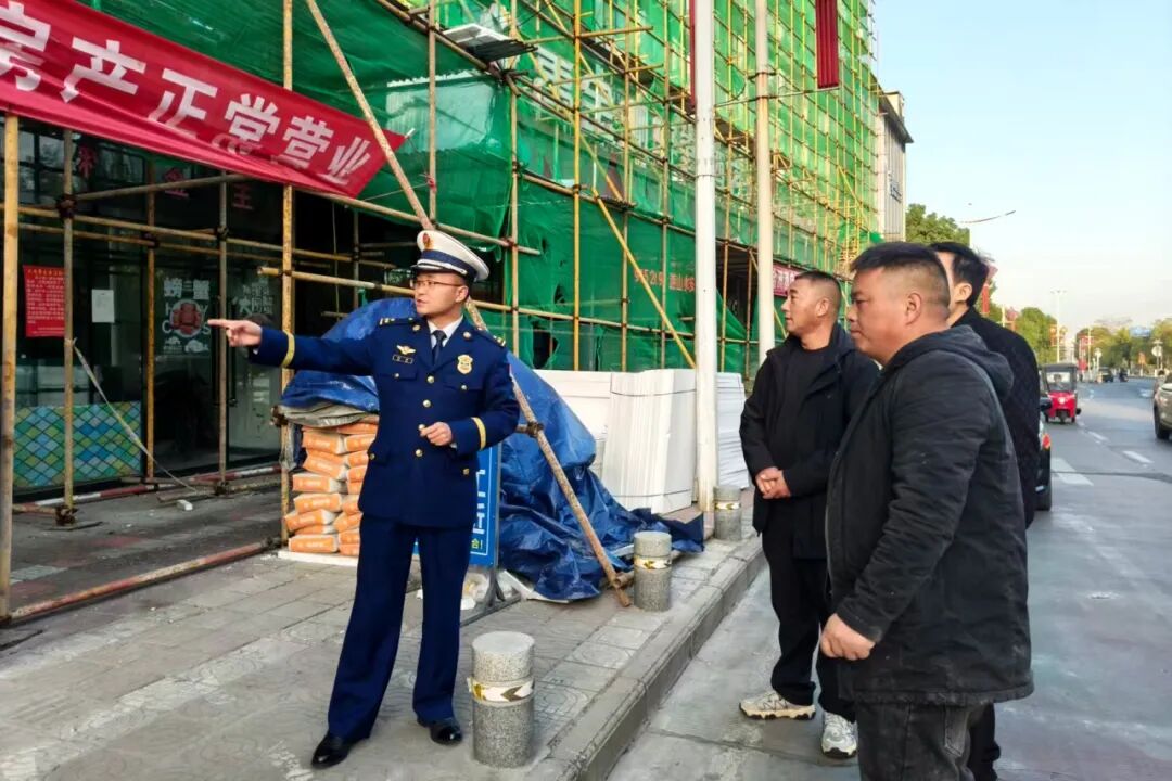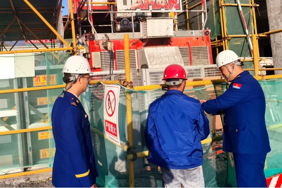 检查组深入各施工工地,重点对外墙脚手架搭建材料的防火性能、安全防护网的燃烧特性和耐火等级进行了检查,确保其符合消防安全技术标准。同时,详细查看了施工现场发泡剂等易燃可燃材料的存储与使用情况,坚决杜绝违规操作。检查过程中,消防监督人员结合现场实际,向管理及施工人员强调了文明用火、规范用电的重要性,并现场宣贯了火灾预防和应急处置知识。