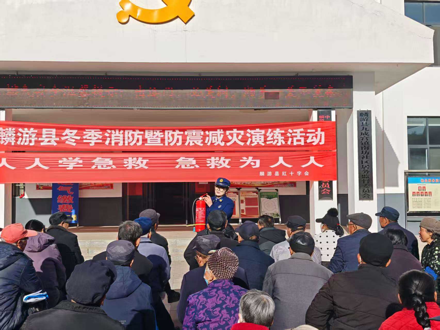 为进一步强化全县社区居民的冬季消防安全意识和防震减灾应急避险能力,筑牢基层安全防线,11月27日至28日,麟游县应急管理局联合县住建局、县红十字会、县消防救援大队、九成宫镇人民政府及各社区居委会以“防震减灾筑防线・科普教育护平安”为主题,在南坊社区、官坪社区、东大街社区、西大街社区依次开展冬季消防暨防震减灾系列演练活动。