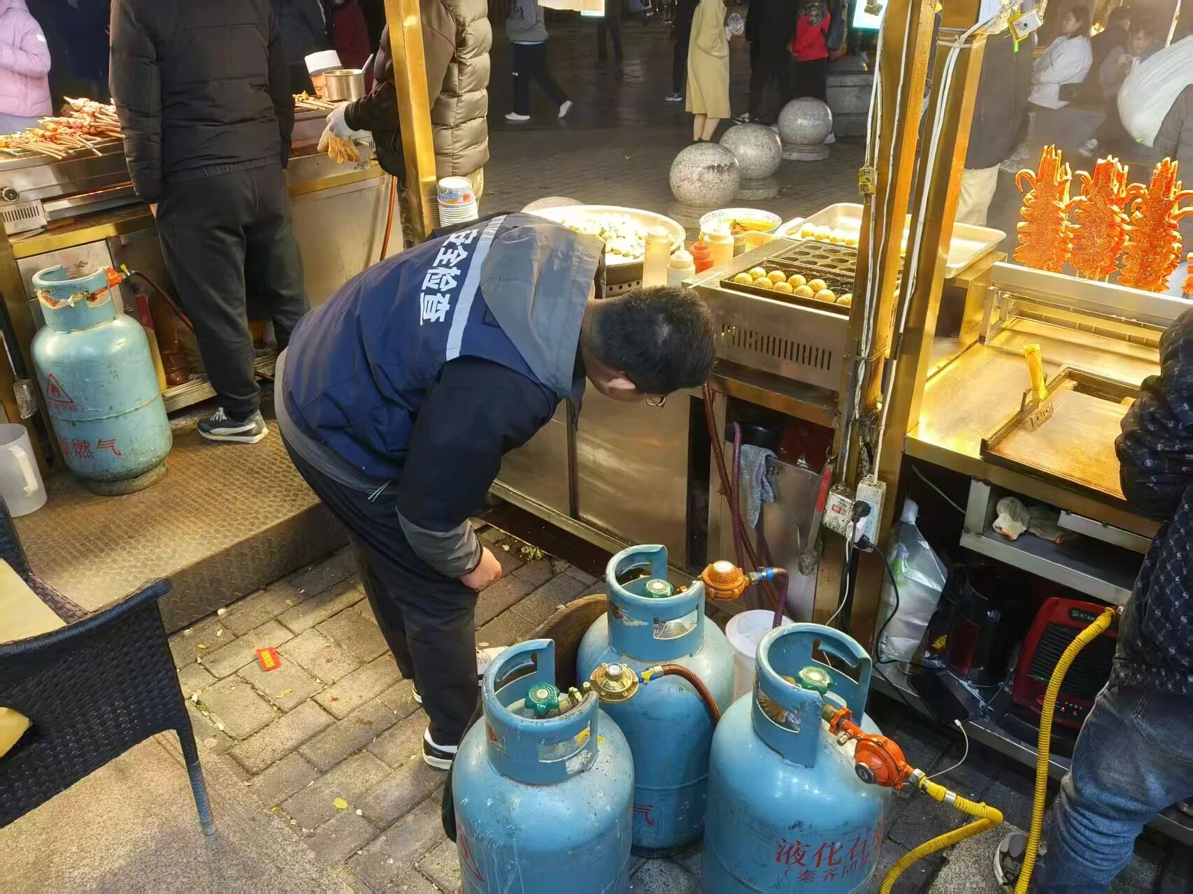 全面排查,组织开展联合夜查。以开展全区安全生产大排查大整治为契机,组织多部门联合行动,聚焦燃气使用关键环节,重点排查气瓶规范存放、可燃气体报警器与切断阀安装及通电状态、燃气软管老化更换等情况,对北院门风情街及洒金桥等重点区域实施夜间突击检查。对检查中发现的问题,建立台账、闭环管理,坚决督促整改到位,确保隐患整改不留死角。累计开展夜间联合检查5次,覆盖高风险餐饮商户400余家,发现并整改问题隐患50余项。