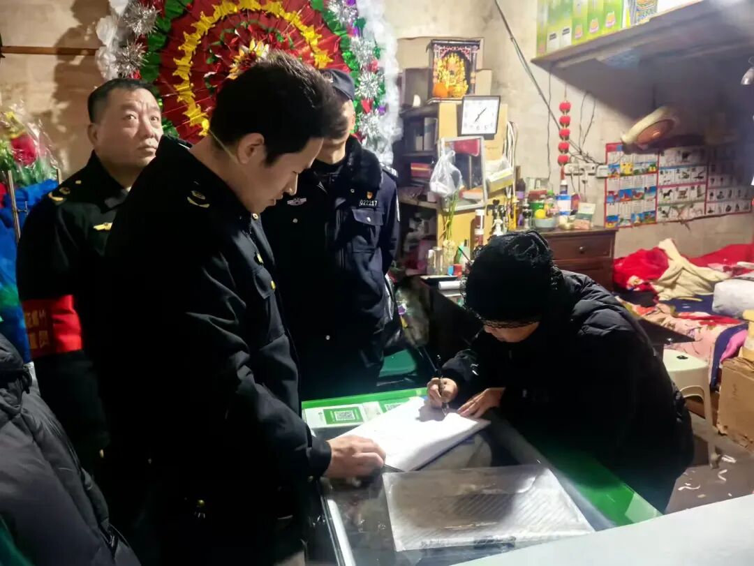 检查组重点排查了汉城步行街沿线、西杨善等地的小超市、烟酒店、丧葬店等场所,对货架、储物间、仓库等区域进行细致检查。行动坚持“查处与宣传并重”,执法人员向商户面对面解读《烟花爆竹安全管理条例》及禁售禁放政策,结合案例说明非法销售、储存烟花爆竹的安全风险与法律责任,引导商户自觉落实主体责任,拒绝涉烟花爆竹违法行为。检查过程中同时向群众普及安全知识,公布举报渠道,鼓励公众参与监督,推动形成全民共治、齐抓共管的治理氛围。