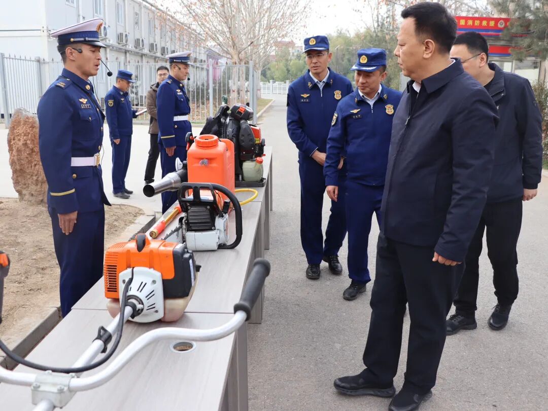 调研组一行深入营区一线,先后察看了大队车辆装备库、训练场地及功能分区布局,在装备展示区详细询问各类消防救援车辆、核心装备的性能参数与配备规模,近距离观摩森林防灭火、综合应急救援等关键装备的实操演示,直观了解队伍专业化救援能力。随后,调研组走进指战员宿舍、生活区域,细致检查居住环境与生活设施保障情况,向坚守应急救援一线的全体指战员致以诚挚问候,传递党和政府的关怀与敬意,叮嘱大队要抓实抓细后勤保障工作,全力解决指战员后顾之忧,让队伍能够心无旁骛投入训练与救援任务。调研组对大队指战员昂扬的精神面貌、装备规范化管理水平及精准化配备成效给予充分肯定。