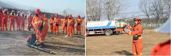 训练中,全体人员精神抖擞、作风严谨。西安大队与地方专业队紧密配合,协同完成了班组灭火、水泵串联、风力灭火机及油锯实操等核心训练科目。大队指战员充分展现出国家消防救援队伍装备操作规范、战术素养过硬的专业优势;同时也虚心向地方队伍请教、学习适应西安本地地形特征、气候条件及植被特点的实战经验,真正实现了“专业互补、经验互鉴”的训练目标。