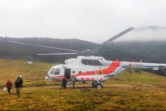 陕西省应急管理厅迅速决策,调派省应急救援保障中心性能优异的高原型M-171直升机(722U机组)执行任务。面对恶劣天气和复杂地形,机组与保障团队反复研判,制定了周密方案。他们综合运用高海拔机降、绞车救援、外载荷作业等多种高技术难度手段,如同在云端“穿针引线”。